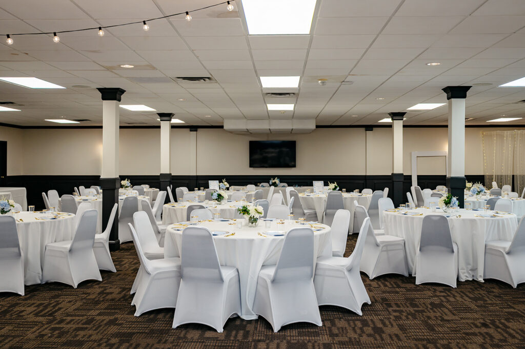 The downstairs banquet hall comfortably seats up to 180 guests and has direct access to our lower east parking lot. While the space is generally used for golf tournament presentations, it can also be used for reunions, receptions, and other large gatherings. The space starts at $1,500.00 and includes set up, clean up and 1 bartender depending on invite size. All beverages must be purchased through Bar8101. Bar packages range from open bar, cash bar, or partial open bar depending on your preference. A bar minimum of $500.00 must be met during your event or an hourly rate of $25.00 will be added to your invoice. Outside catering can be brought in at no upcharge and is our preferred practice. This space is subject to availability as its primary use is golf tournaments.